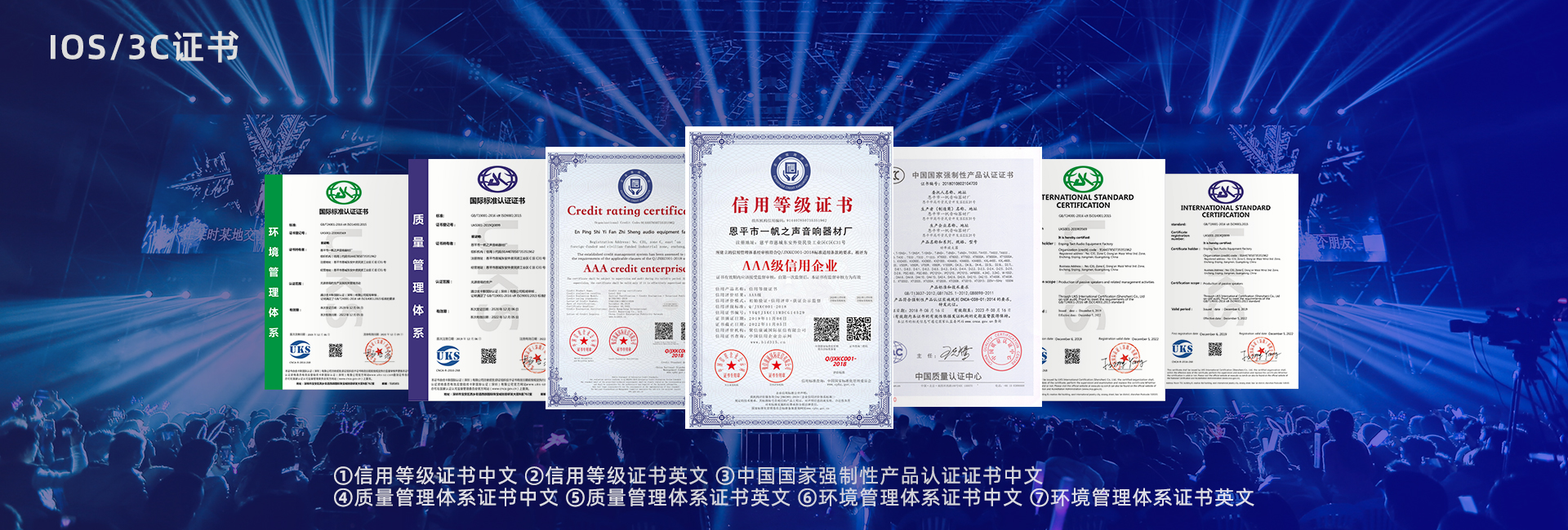 一帆音響已獲得質量管理體系證書,環管理體系證書,AAA信用證書,各種產品檢測報告等不同的證書。可提供投標資質的資料參與投標,助力拿下大工程